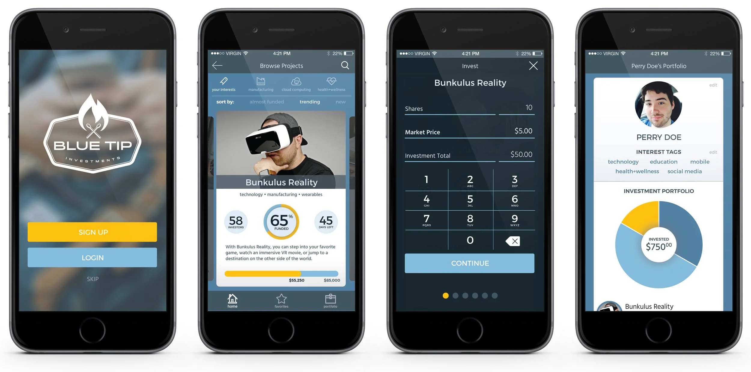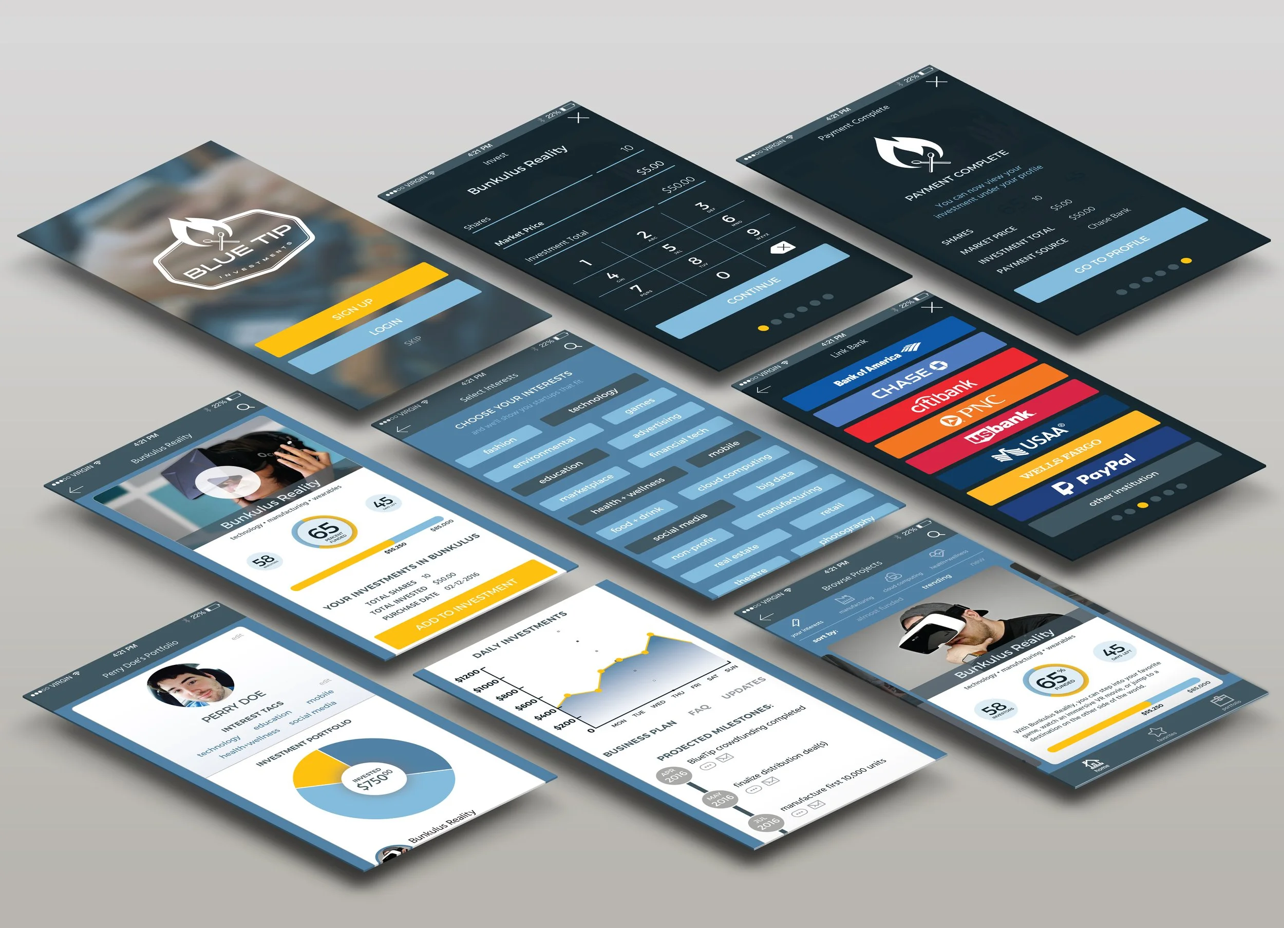 Exploratory project for DESIGNATION (now the Flatiron School) to create an online crowdfunding platform for investing in start-ups.